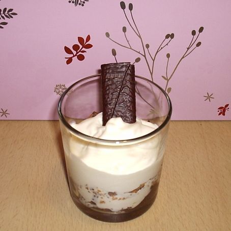 Alternate again the different layers and finish with a wafer on top for decoration. Place in the fridge to chill at least 3 hours before serving.