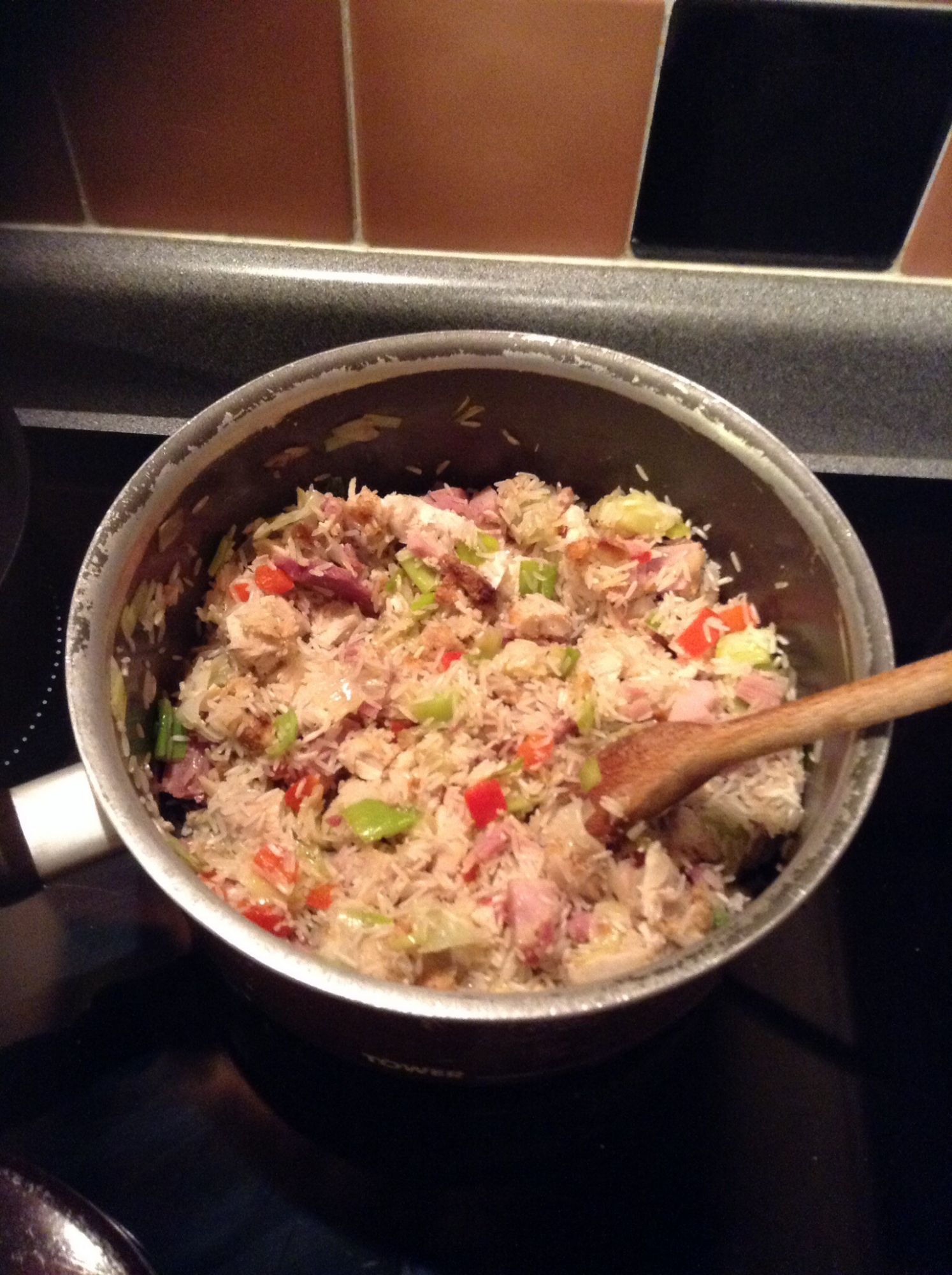Based loosley on a paella recipe, but using leftover roast meats from the weekend!
