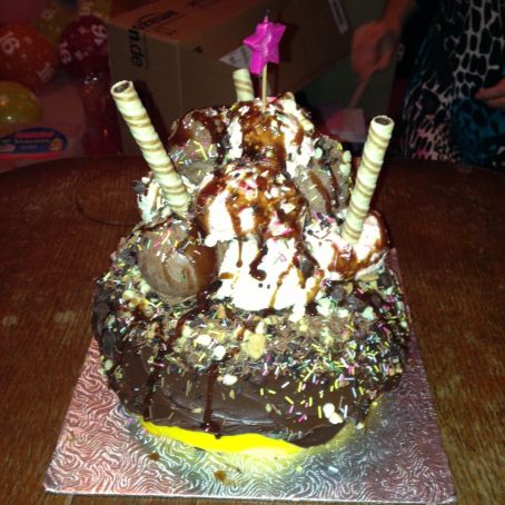 Use an ice-cream scoop to create the ice-cream effect on top of the cake (roughly 2 scoops of each flavour).