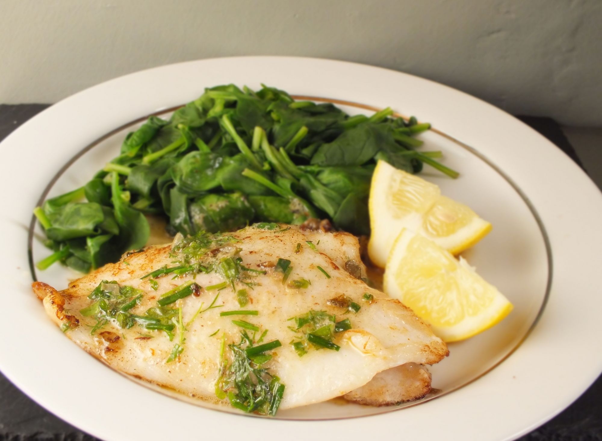 Meanwhile, place the spinach in a pan with 1 tbsp water. Cover and cook for 2 minutes, until the spinach wilts. Stir in the Parmesan, nutmeg and crème fraîche then divide between 4 warmed serving plates. Top each with two fish fillets and a few cherry tomatoes.