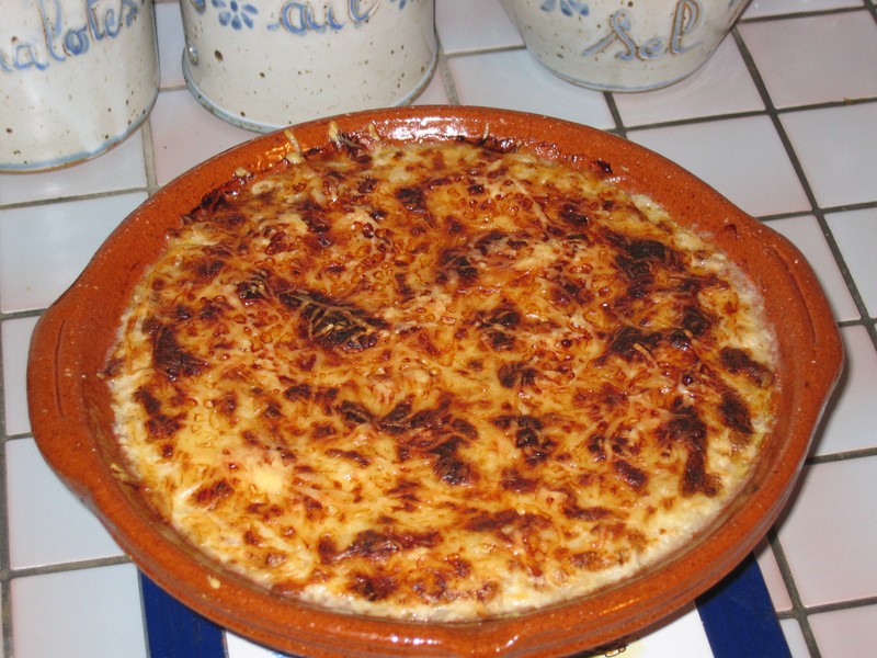 Put into a heatproof dish and cover with grated cheese and bake in the oven for 15 minutes.